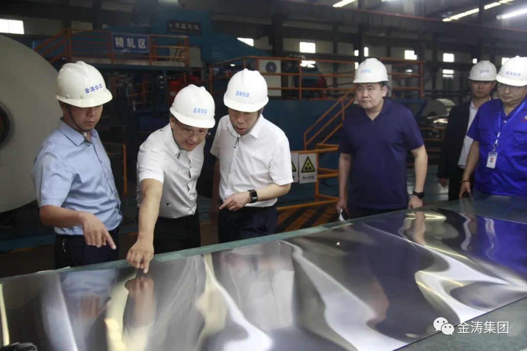 5月26日,洛陽市澗西區(qū)區(qū)長、洛陽市高新區(qū)(自貿(mào)區(qū) 綜保區(qū))管委會主任王耀光一行蒞臨金濤實業(yè)集團考察指導。金濤實業(yè)集團董事長李登科、集團總經(jīng)理王志軍、集團行政人事中心總監(jiān)李旭官、洛陽金濤華印新材料有限公司總經(jīng)理孫宏等領導熱情接待。